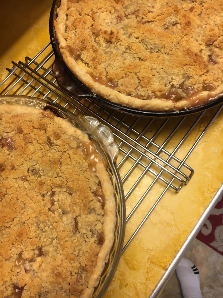 The cream-and-blue-trimmed Hoosier cupboard sits in the entry porch now, just outside the kitchen, holding my baking supplies and dry staples in its upper cabinets, onions and potatoes in its pull-down bins with rounded tin-lined bottoms.