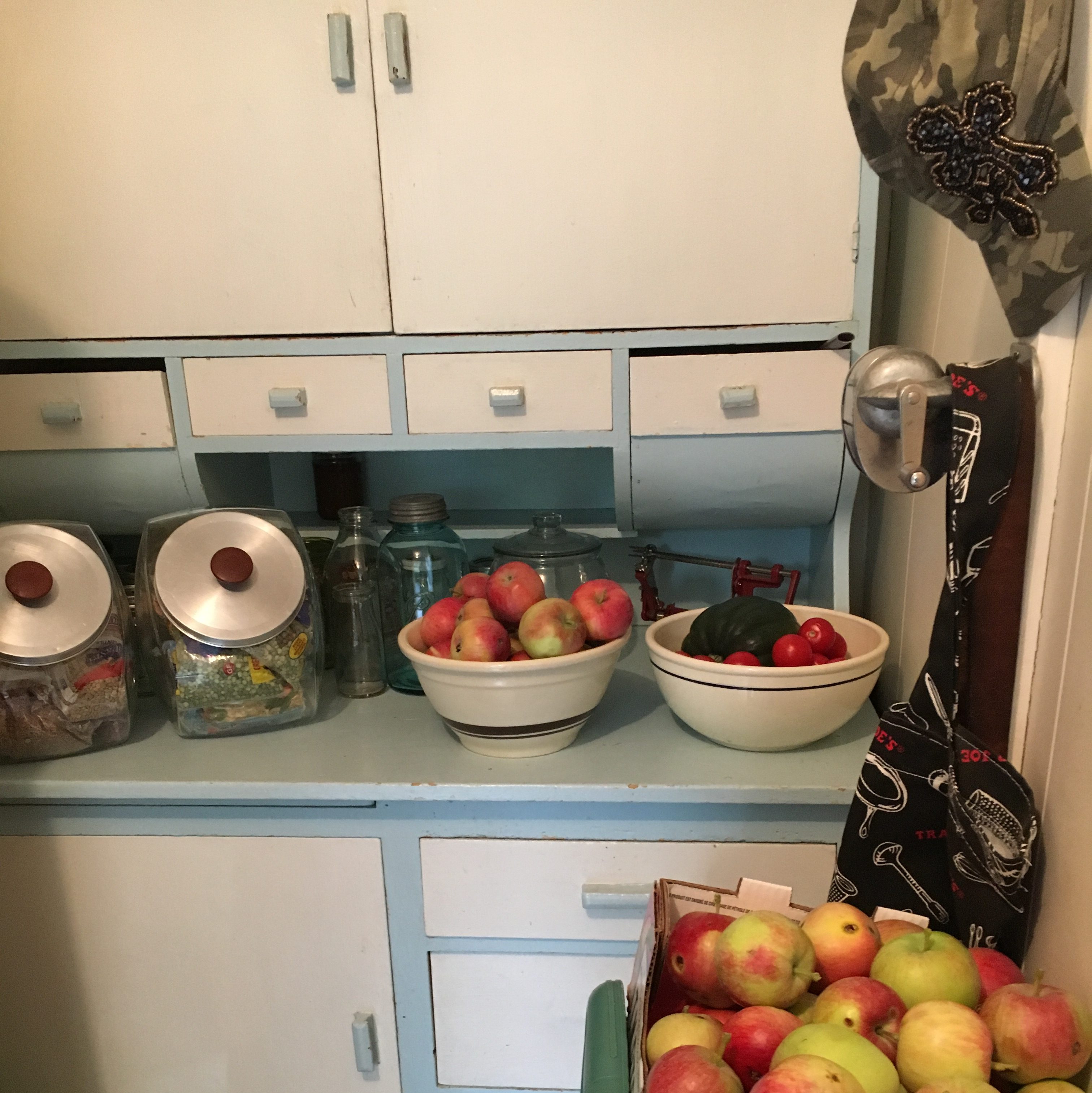 When it’s cold outside for days on end and my soul’s had its fill of stark, beautiful white and gray, I tend to turn inward, drawn to cozy corners in the cabin, little still life images that appear in shafts of sunlight, or homely objects still being used today as they were when Grandpa and Grandma lived in Stonecroft. Aunt Anna Lou left Grandma’s Hoosier cabinet for me. “It should stay in Stonecroft.”