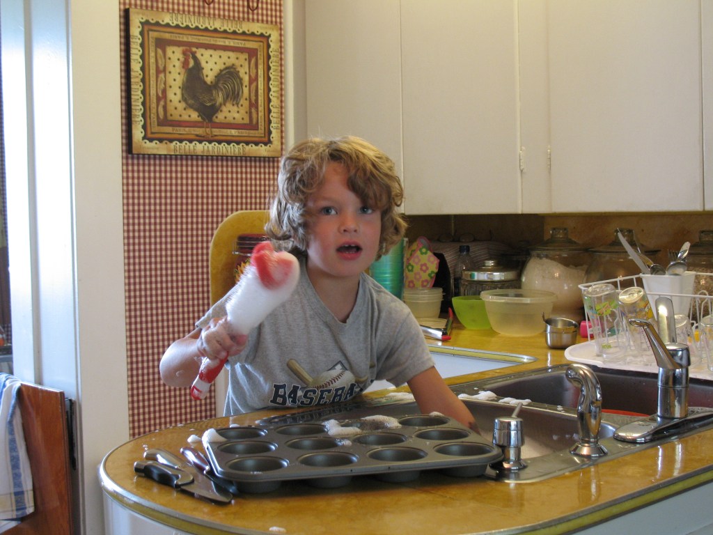 The Hoosier cupboard was Grandma’s main kitchen storage until cabinets were built across the kitchen from the cookstove, with a peninsula turning to hold her sink. Dishes were done in a dishpan on the end of the cook stove before that. This sink faces the window to the road . . . the only window on the west side of the cabin. The cabinets have been painted a creamy white many, many times over the years. When I pulled a two-inch chunk of paint off the front of the pull-out bread board—using duct tape to hold my pastry cloth in place—I could see that I would have to fill it with putty before I’d be able to paint it. That’s how many layers there are. The countertops are a bright yellow linoleum, edged with thin stainless strips, unchanged still today.