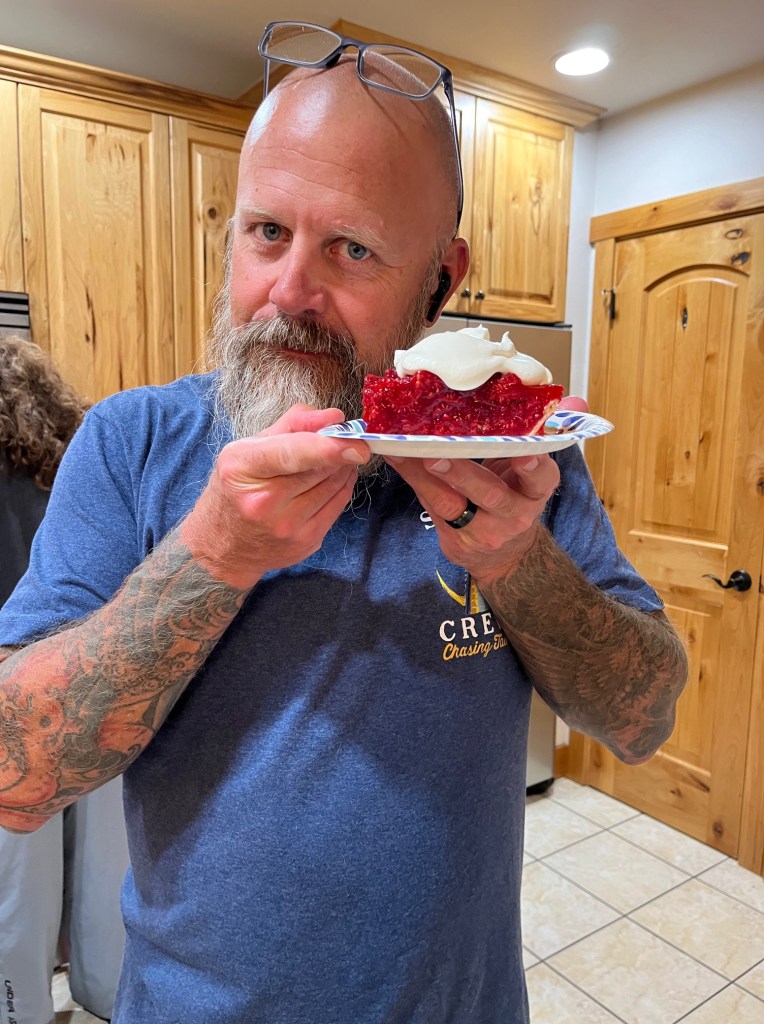 I brew coffee, sit with the quiet. But it’s not sadness I feel with the empty house, or loneliness, but simply gratitude. You don’t know way back when they’re littles with not even a minute for yourself in the bathroom . . . or when they’re teens and you’re praying them through, praying you get this right . . . or young adults lifting on wings away from you . . . that it’s not over. You don’t know they’ll still come back, still want to be with you, still need you and that you’ll need them. Being with them always reminds me who I am, fills me up, restores me. Ah yes, this. The power of family. The sheer gift of it all. My heart is full. And Thomas finally got his fresh raspberry pie!